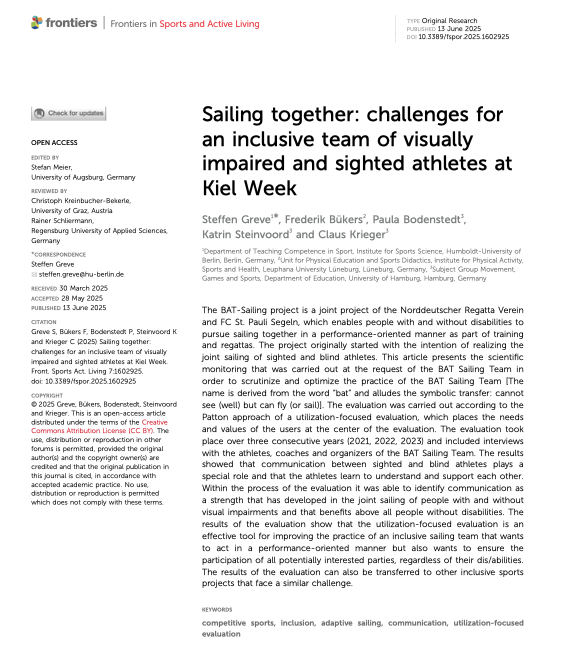 BAT Sailing Team im internationalen wissenschaftlichen Fachmagazin: Studie in „Frontiers in Sports and Active Living“ veröffentlicht